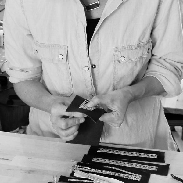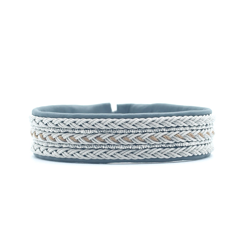 The art of pewter thread embroidery from the Saami culture and the beautiful nordic nature are true inspirations for my designs and creativity. Incorporating contemporary elegance and simplicity, I strive to honor and share my dedication to this traditional handcraft from my homeland. Each piece is uniquely handmade by me in California. Please allow up to two weeks for delivery.