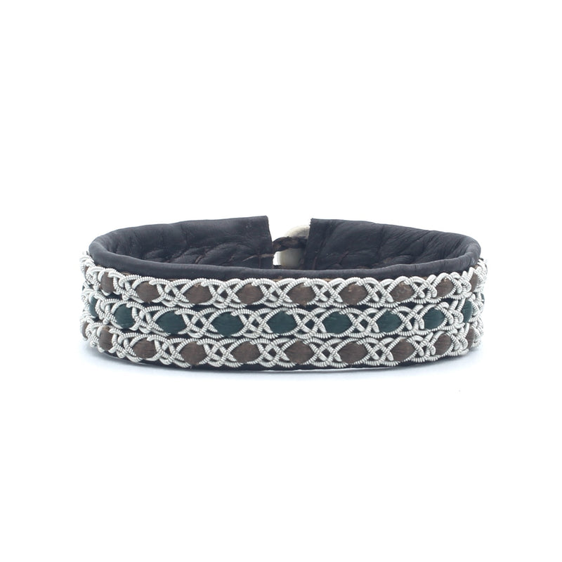 Lucia Narrow Braid with Silver Beads Dark Brown 6 3/4"