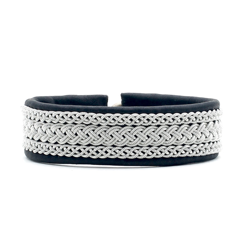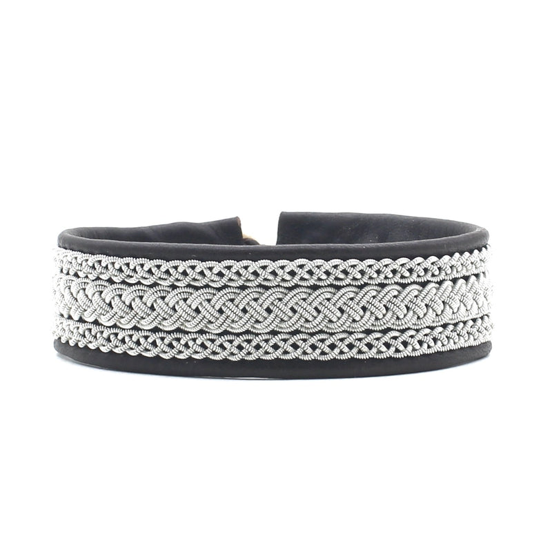 Lucia Narrow Braid with Silver Beads Black 7 1/2"