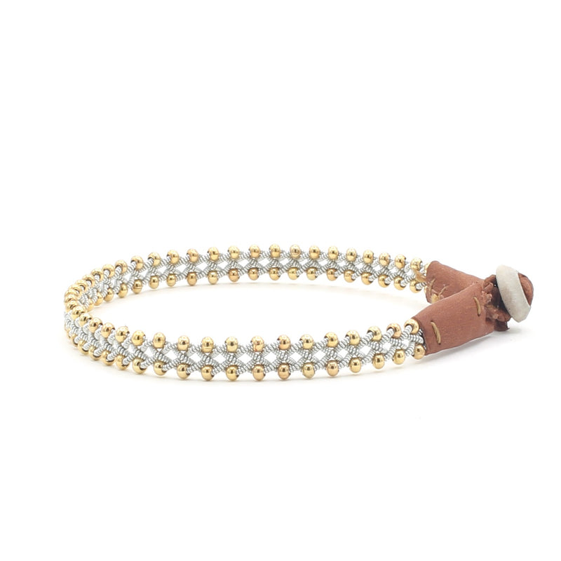 Lucia Narrow Braid with Silver Beads Camel 7 1/2"